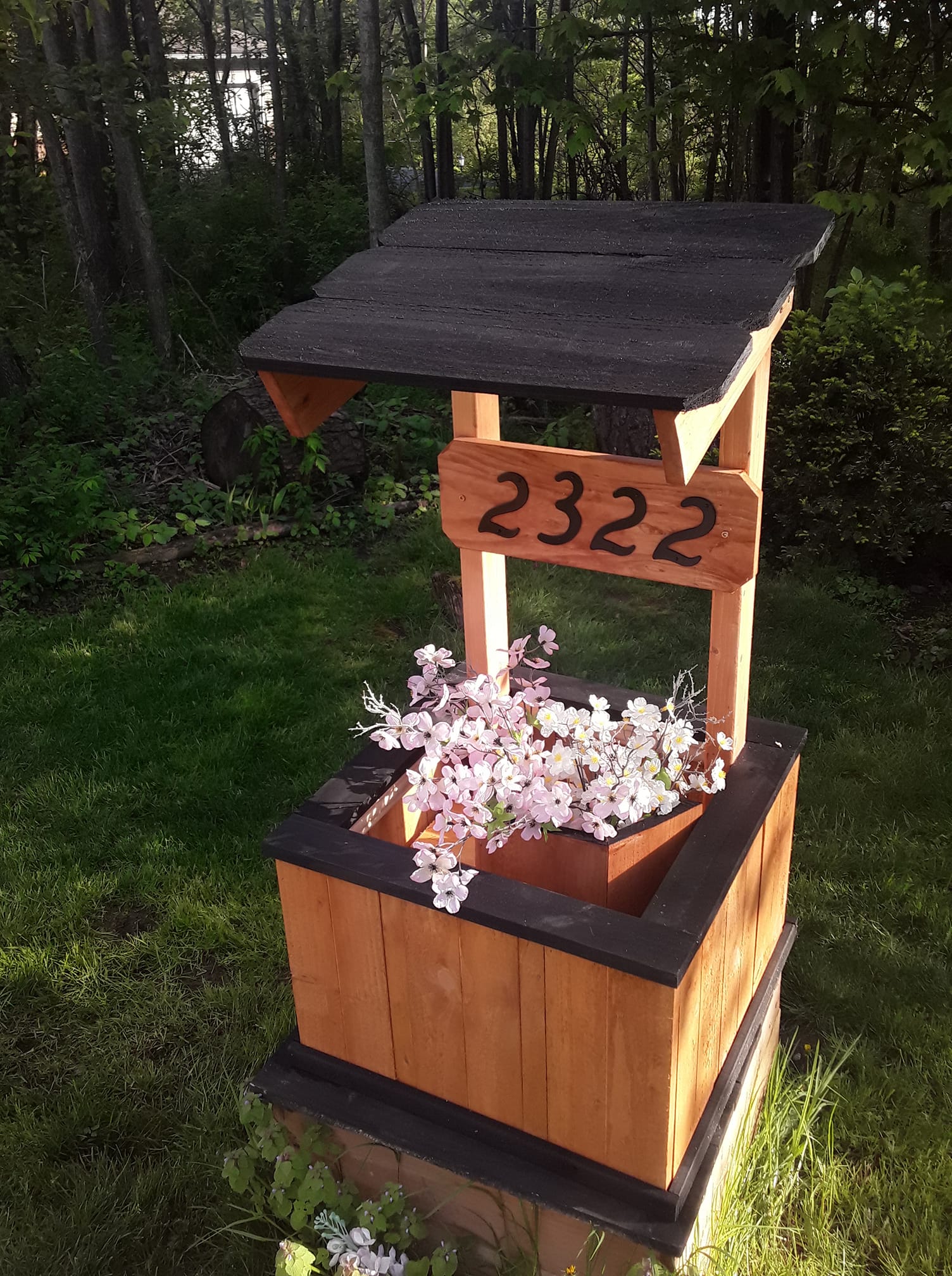 Trimmed with exterior Black Stain.